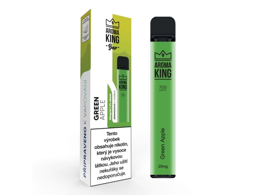 Jednorázová e-cigareta Aroma King Classic 700+ Green Apple má šťavnatou a lehce kyselkavou chuť zralých zelených jablek, kterou si určitě s jinou nespletete.
