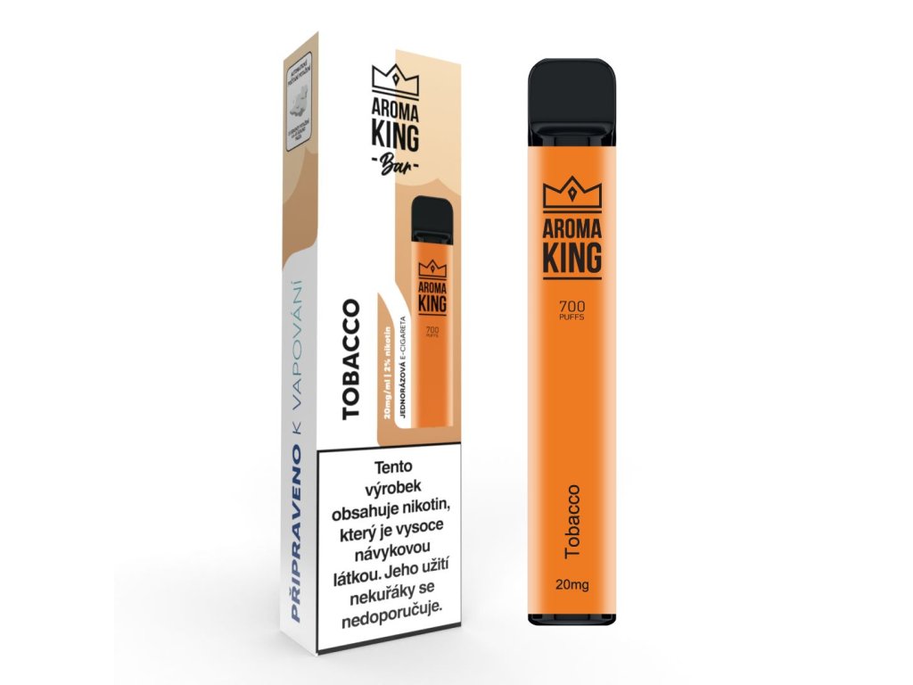 Použití e-cigarety Aroma King je naprosto jednoduché - pouze vybalíte z krabičky a můžete začít vapovat. Krabička e-cigarety ukrývá náplň, neboli e-liquid, s kapacitou 2 ml. Obsah nikotinu je 20 mg/ml (2%). Tuto jednorázovou e-cigaretu není možné doplňovat ani dobíjet.