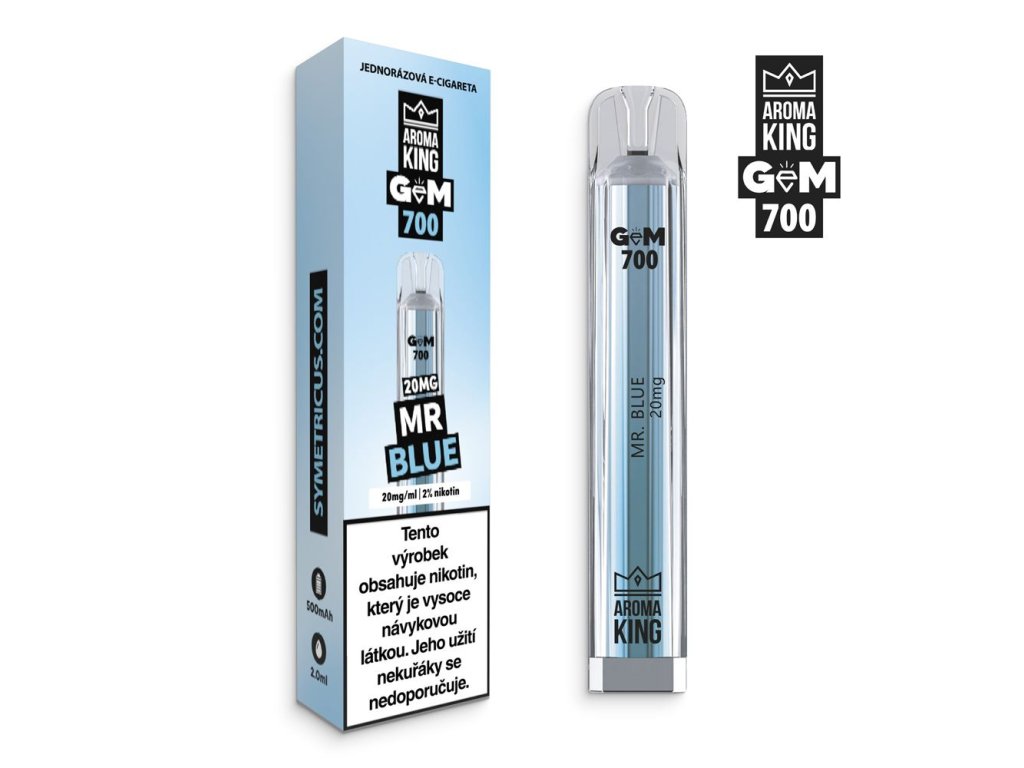 Jednorázová e-cigareta Aroma King Gem Bar 700 Mr. Blue s legendární příchutí borůvek.