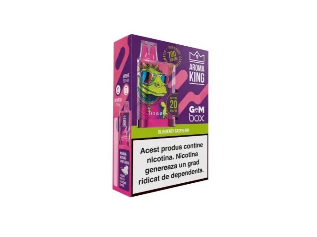 Vyzkoušejte naší jednorázovou e-cigaretu Aroma King Gem Box 700 Blueberry Raspberry nabízí unikátní směs borůvek a malin, která uspokojí i ty nejnáročnější jazýčky. Sladká chuť borůvek dokonale ladí s kyselým tónem malin a vytváří harmonickou a intenzivní chuťovou kompozici.