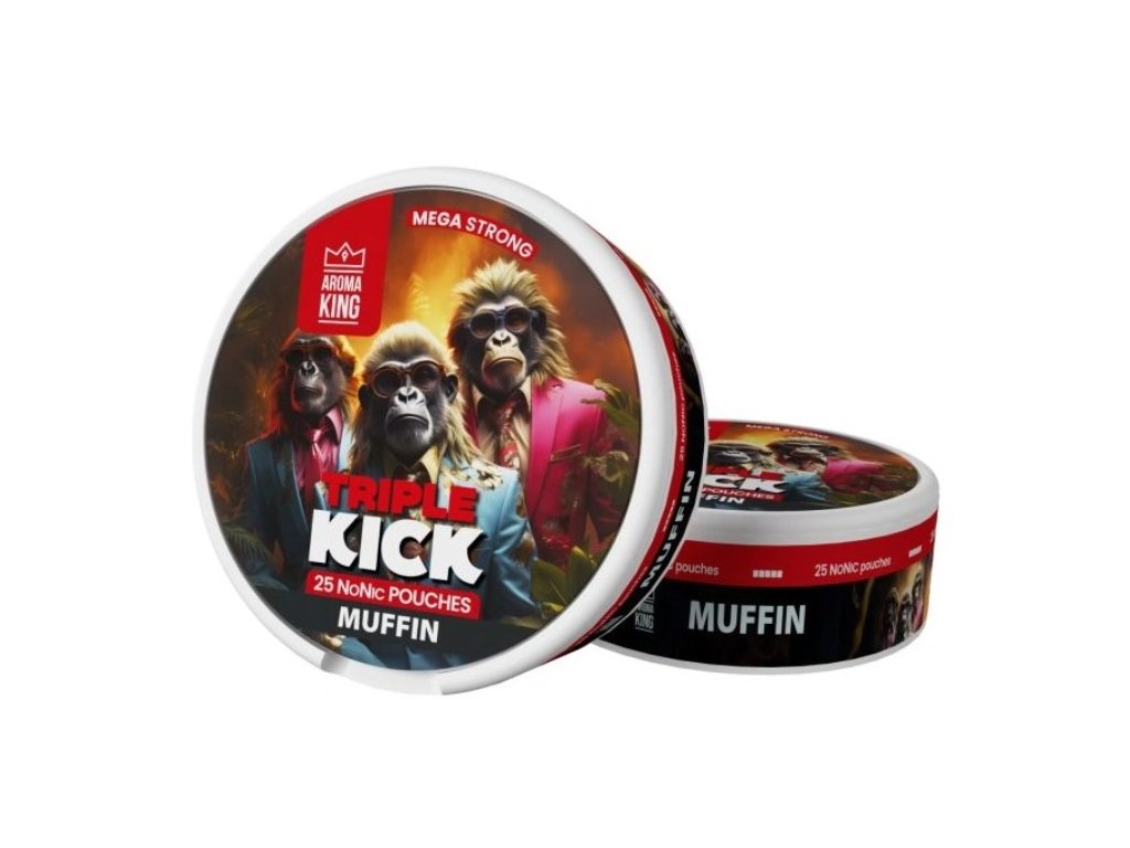 Aroma King TRIPLE KICK - MUFFIN jsou NoNicotinové sáčky s jemnou a sladkou chutí krémového dezertu. Sáčky NoNic jsou určeny pro pokročilé a zkušené uživatele - 20mg NoNic substance má sílu jako 100mg nikotinu.